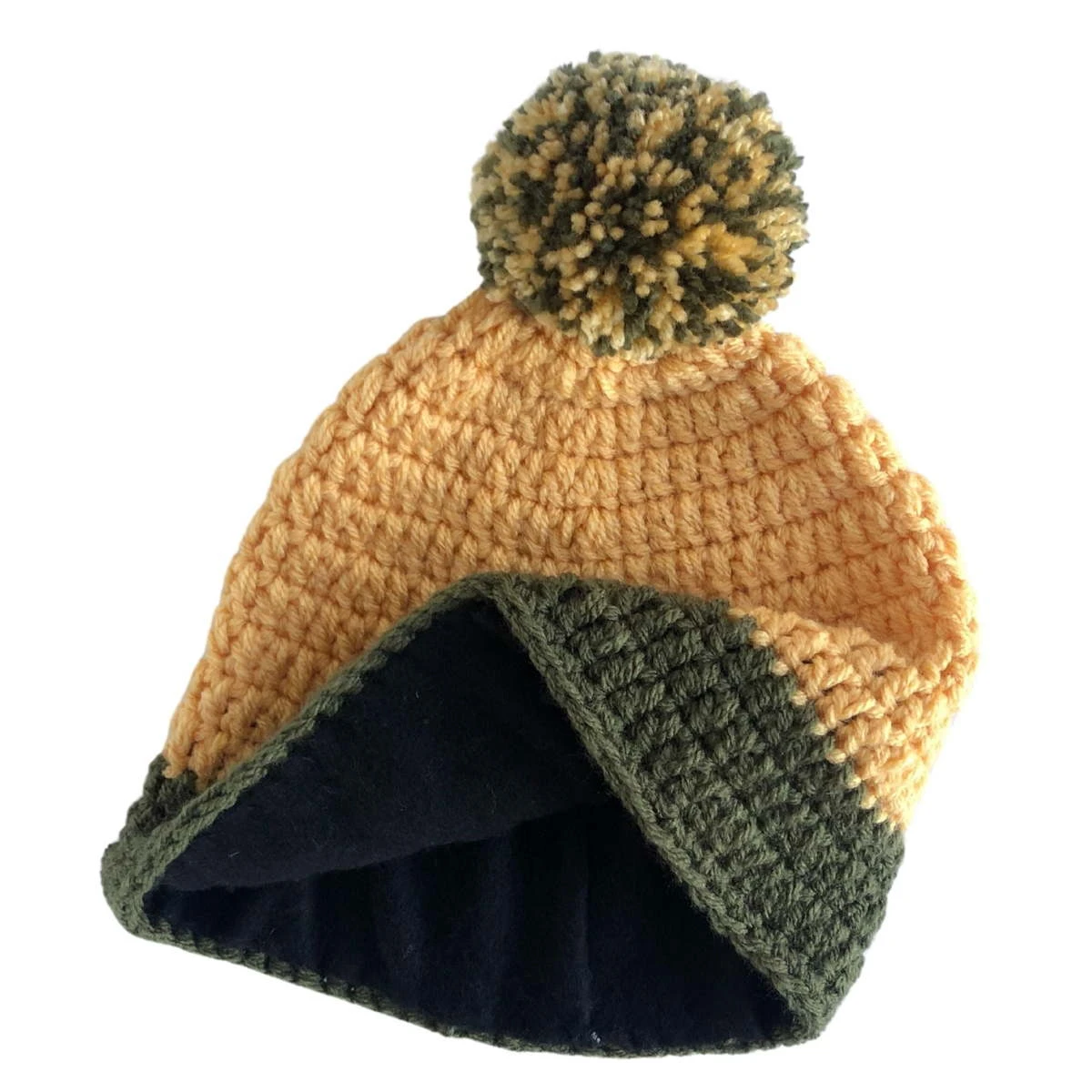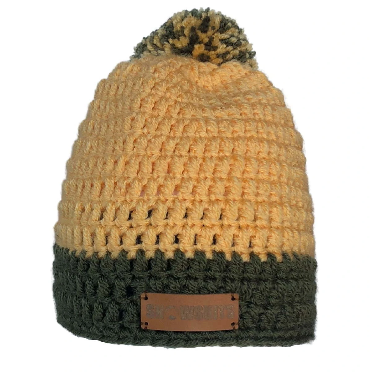 Deze geel met groene muts van Snowsuits is een 100% premium acrylwol handgemaakte beanie. De winter muts is van binnen gevoerd met fleece, heerlijk warm en zacht. De muts kriebelt niet. Een stoere, gehaakte muts van Snowsuits.