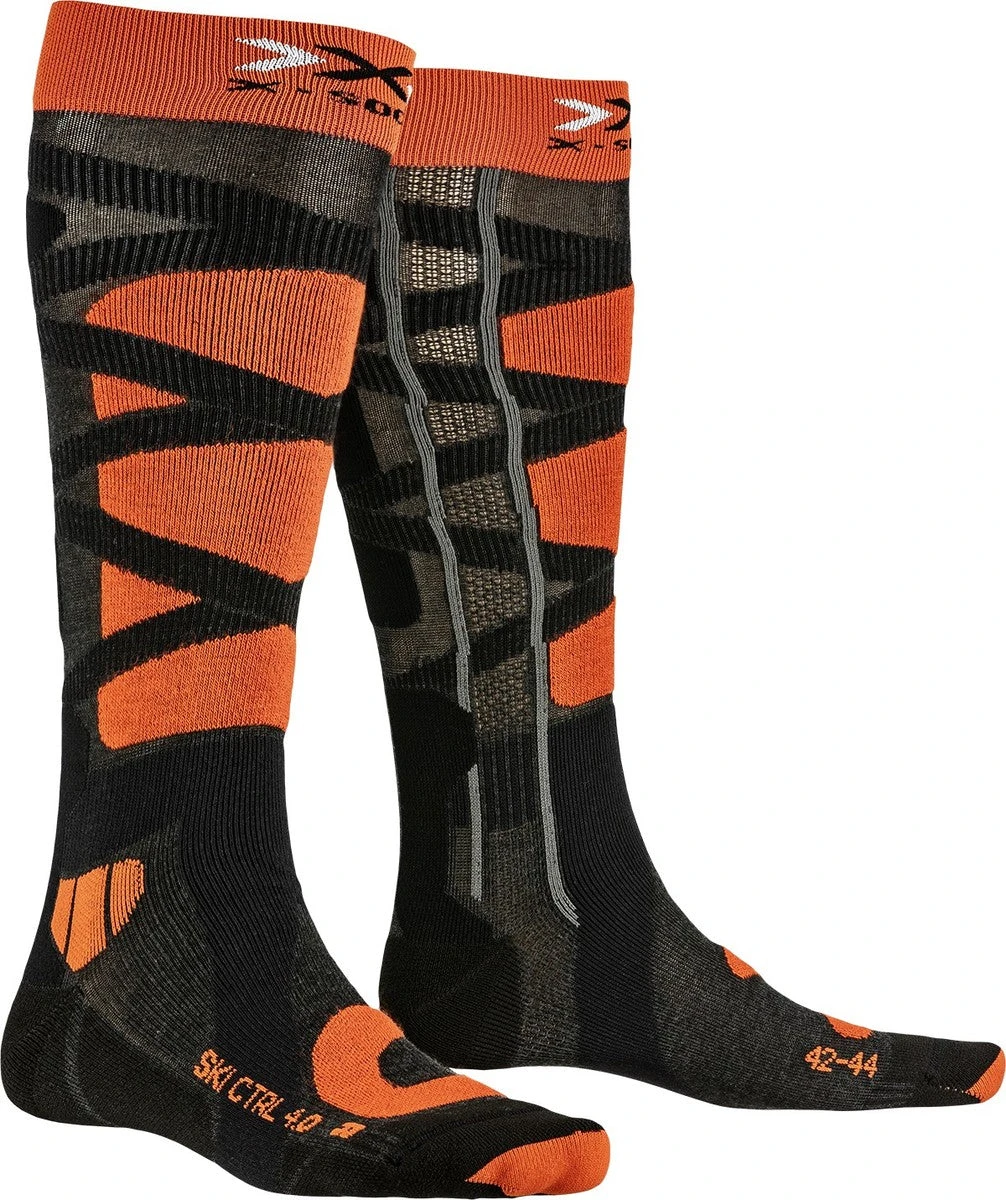 De X-Socks Ski Control 4.0 heeft High tech garens en gepatenteerde technologieën beschermen de voet effectief, van het scheenbeen tot de tenen. Het nieuwe Suppronation voetbed zorgt voor een juiste plaatsing van de voeten. Het nieuwe HeliXCoil systeem omringt de kuit met twee concentrisch gebreide spiralen, die de spieren stabiliseren, de bloedcirculatie bevorderen en het risico op vermoeidheid gerelateerde blessures reduceren. De Iso-Blocker reduceert drukpunten op de voet. Deze sokken beschermen de voeten niet alleen, ze houden ze ook warm en droog. Hoe? Vocht verdampt snel door de microfibers van het ademende Mythlan en het thermo actieve Xitanit garen zorgt constant voor een aangename temperatuur.